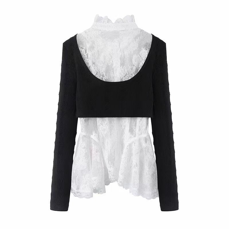 レース部分の透け感が軽やかで、インナーとのレイヤードで