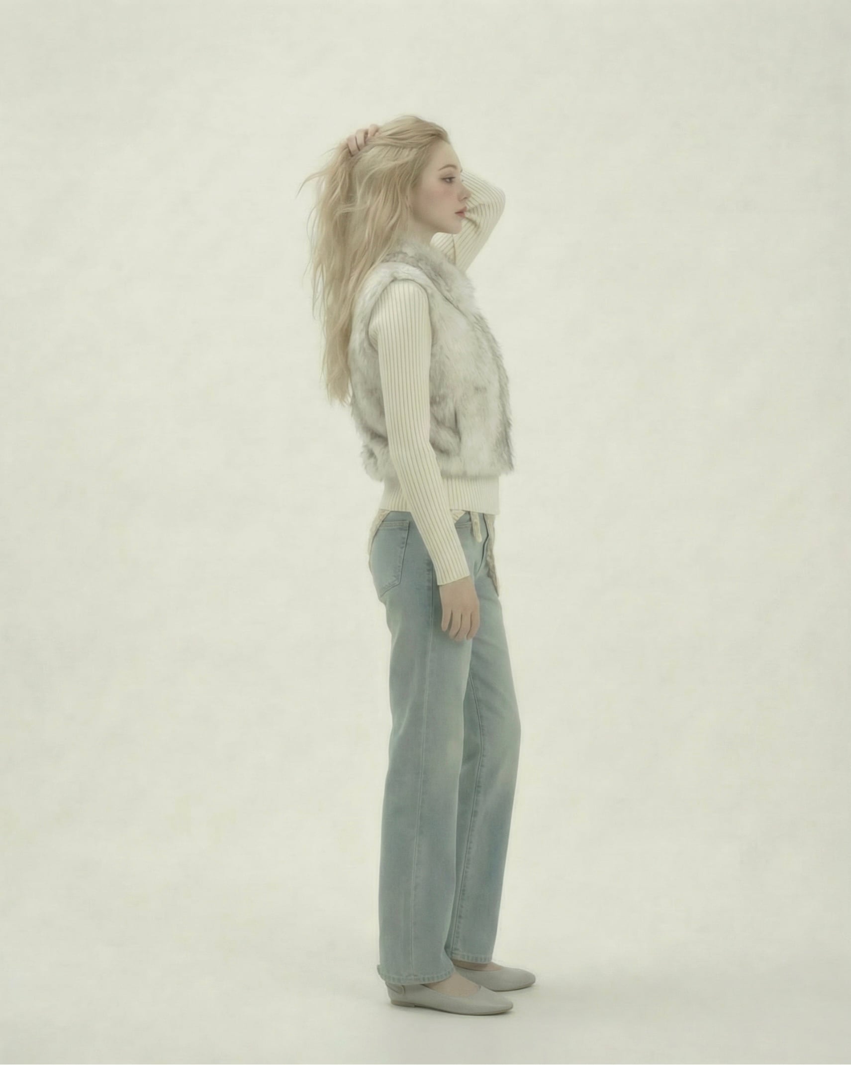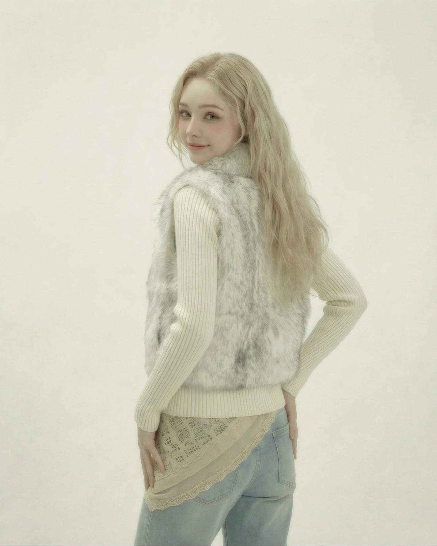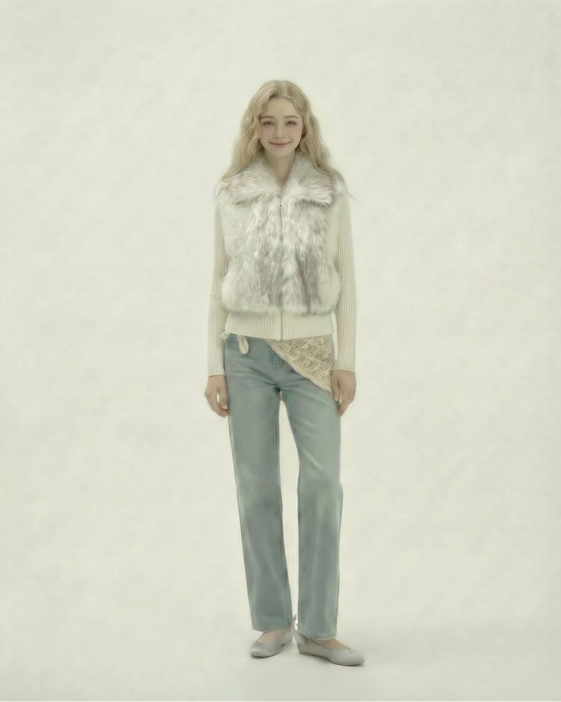 ボディにはふんわりとしたファーベストのボリューム感を持たせ、